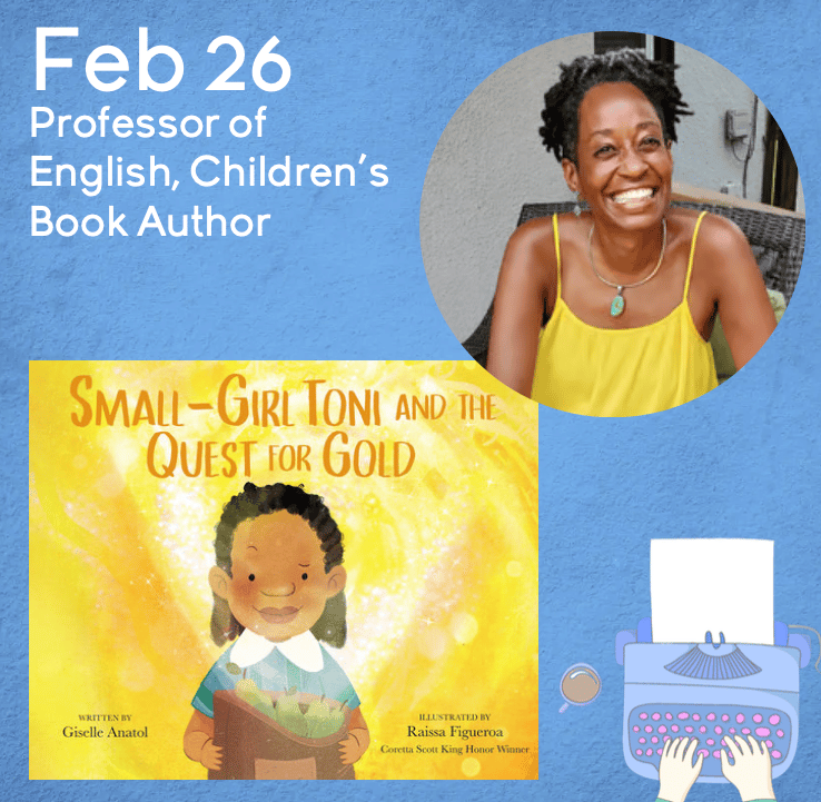 In celebration of Black History Month, Giselle will meet and greet students and share Small-Girl Toni and the Quest for Gold.