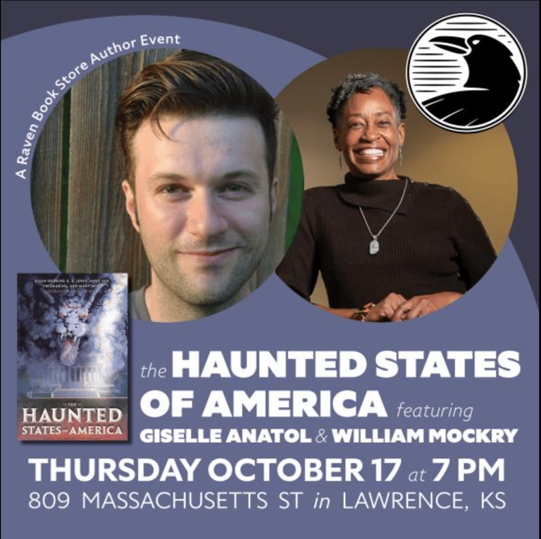 Local authors Giselle Anatol and William Mockry will bring the frights to the Raven for a spooky, family-friendly reading of their stories from the new anthology The Haunted States of America. Books will be available for sale and signing.